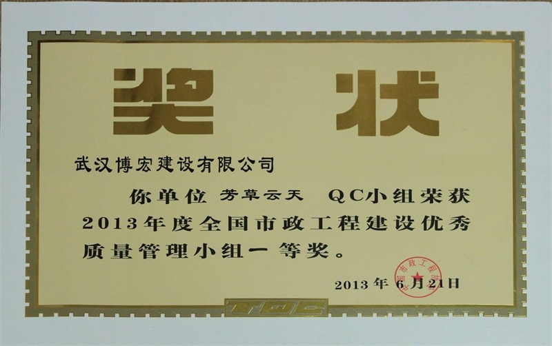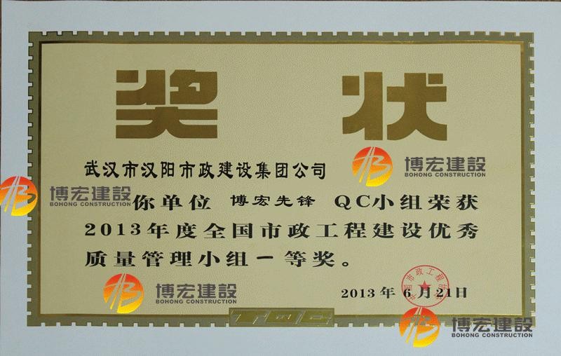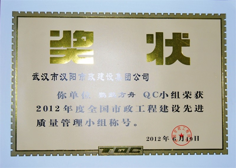 2012年度全國市政工程建設(shè)先進(jìn)質(zhì)量管理小組