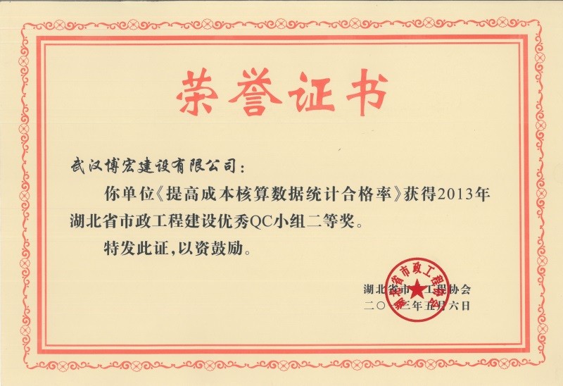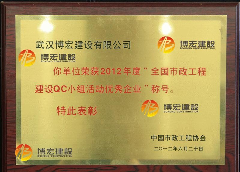 2012年度全國市政工程建設(shè)QC小組活動優(yōu)秀企業(yè)