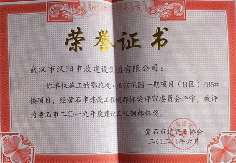 2019年度建設(shè)工程銅都杯獎(jiǎng)(鄂旅投·正信花園一期項(xiàng)目(B區(qū))B6#樓項(xiàng)目