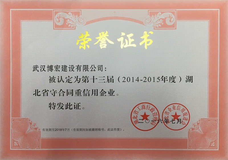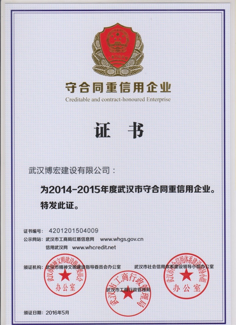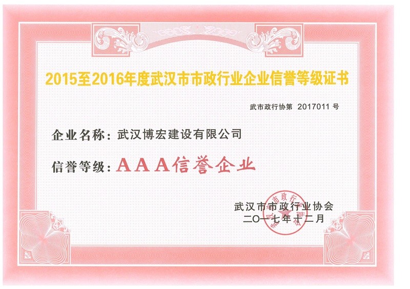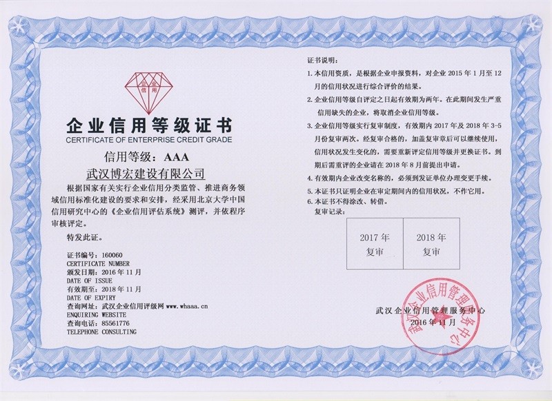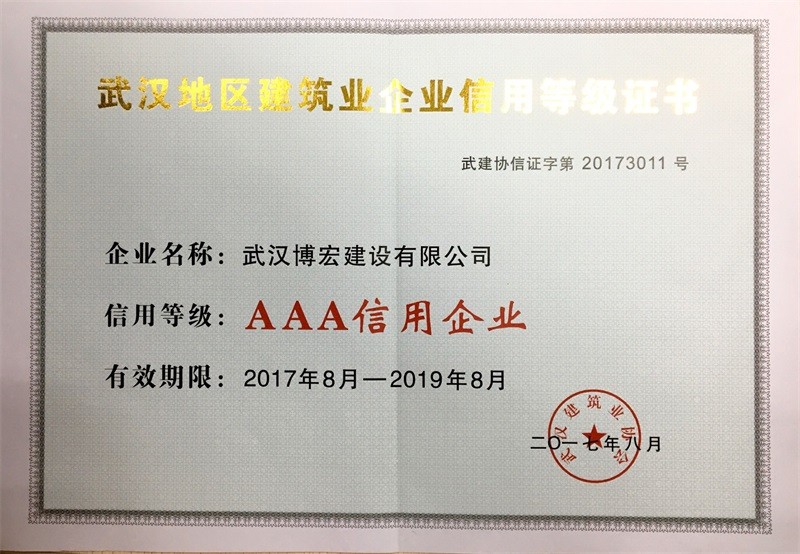 武漢地區(qū)建筑業(yè)企業(yè)信用等級證書2017-2019年度