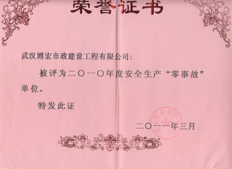 2010-2011年度武漢地區(qū)市政企業(yè)信譽(yù)等級證書