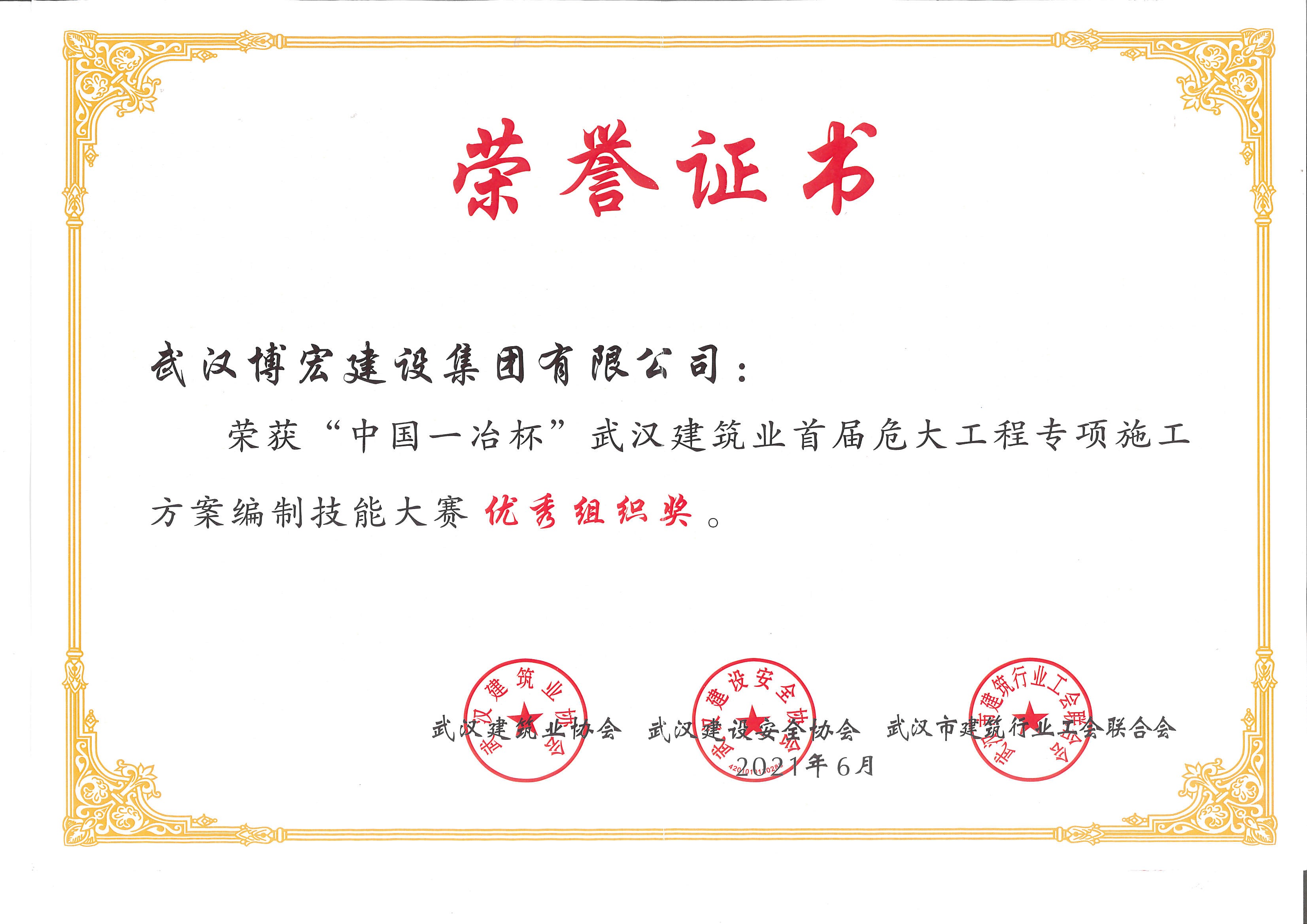 中國一冶杯武漢建筑業(yè)首屆危大工程專項施工方案編制技能大賽優(yōu)秀組織獎