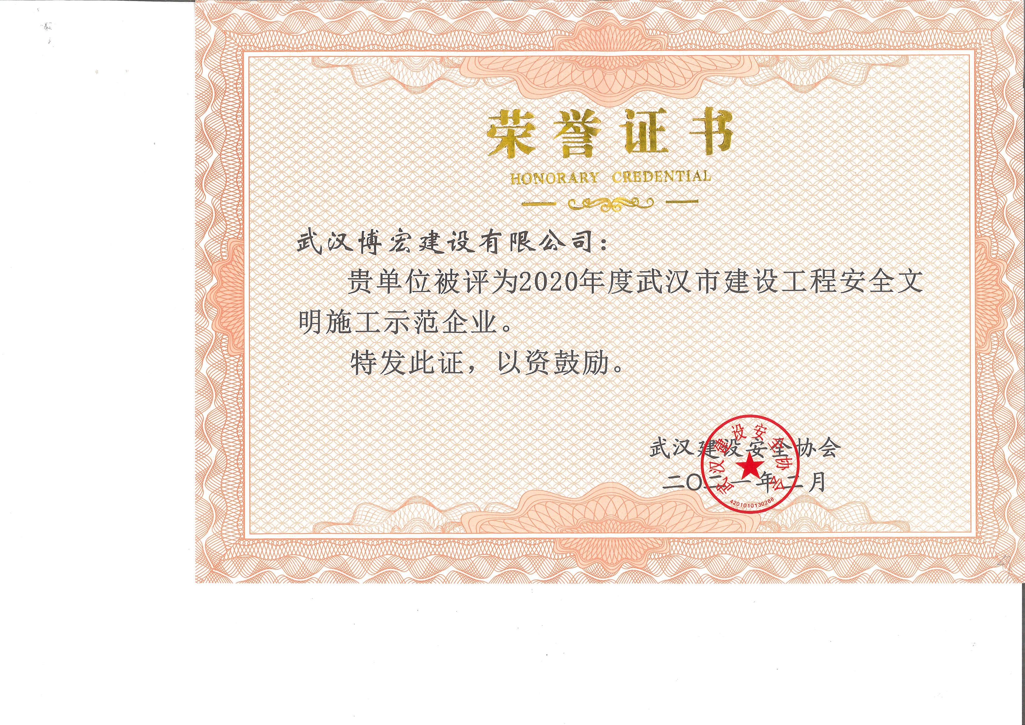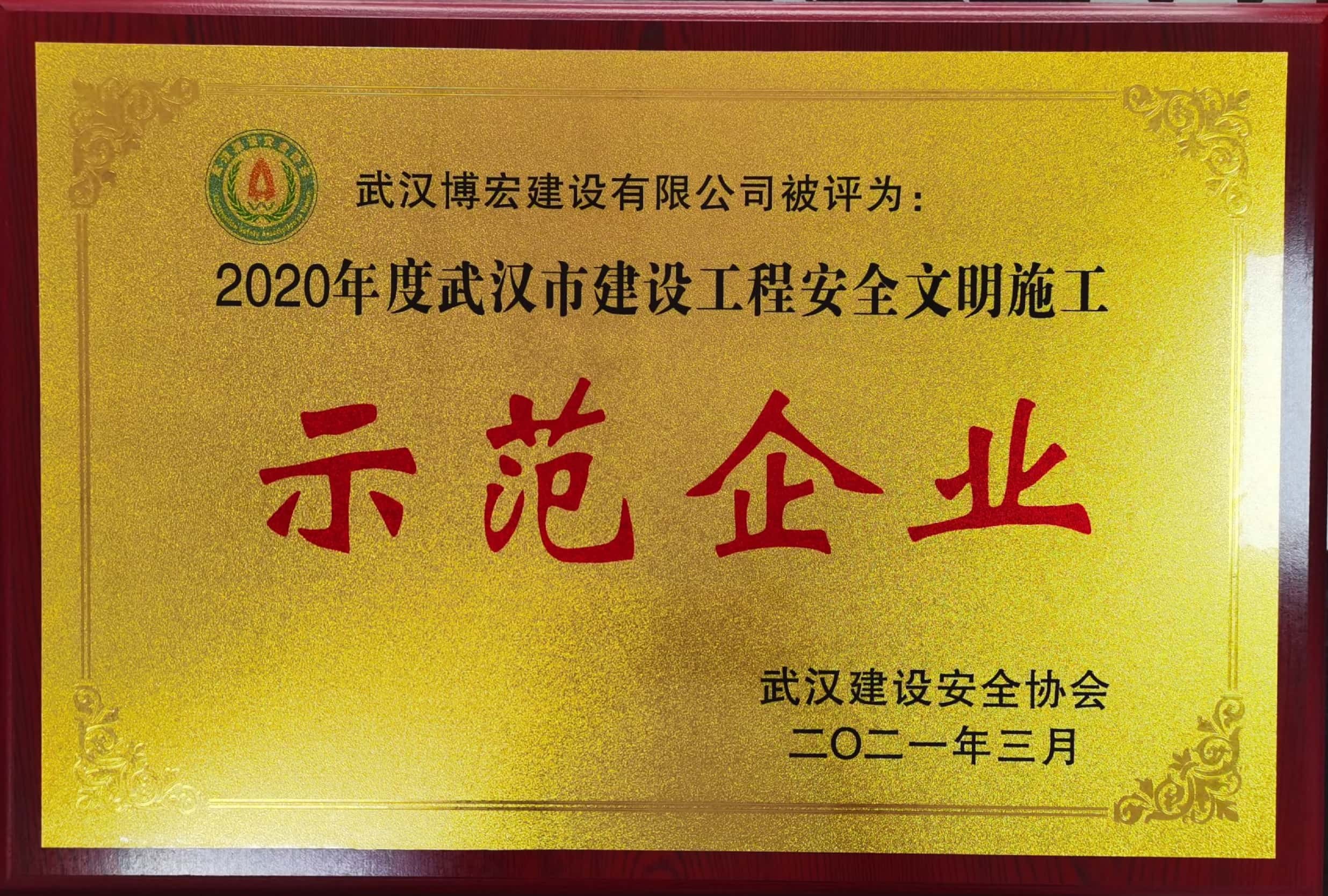 2020年度武漢市建設(shè)工程安全文明施工示范企業(yè)