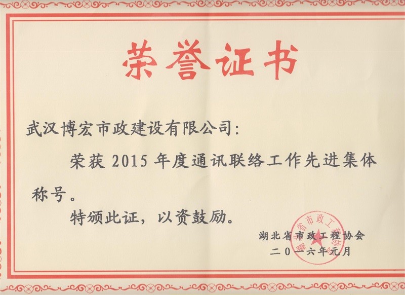 2015年度通訊聯(lián)絡(luò)工作先進(jìn)集體稱號