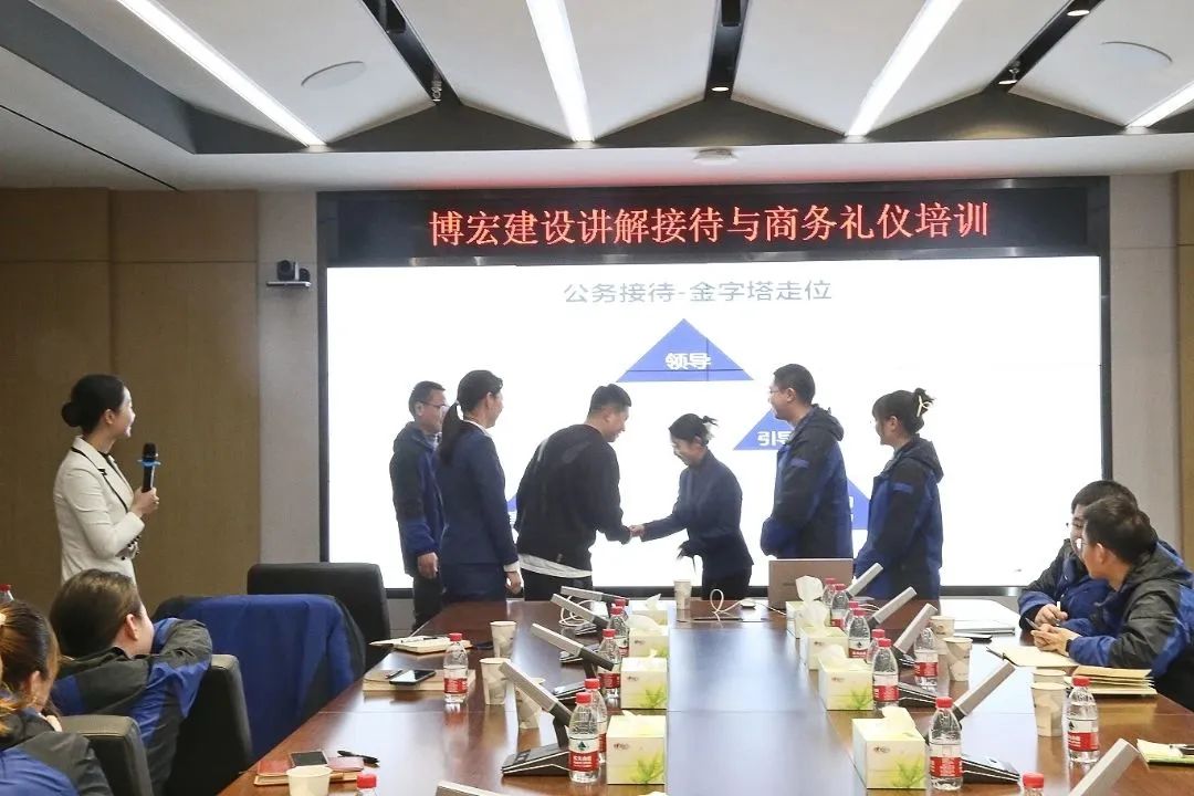 為提高公司會(huì)議及接待水平,提升員工綜合素質(zhì),塑強(qiáng)公司品牌形象。2月9日下午,博宏建設(shè)集團(tuán)在會(huì)議室組織開展了以“接待與商務(wù)禮儀”為主題的專題培訓(xùn),公司特邀知?jiǎng)?chuàng)禮學(xué)院首席培訓(xùn)導(dǎo)師、項(xiàng)目策劃師安娜老師授課。