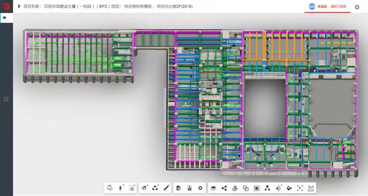 研究生期間彭迎研究的方向是BIM技術(shù)土建方向,但工作需要盡快上手的是BIM技術(shù)機電方向,一時讓她有點手足無措,“有問題先嘗試解決,辦法總比困難多”踏實肯干的她選擇了迎難而上,白天她跟著師傅們不厭其煩地穿梭于現(xiàn)場的各個樓棟,在工作過程中多看、多問、多記、多學(xué),晚上回到宿舍,她通過閱讀大量BIM機電方向相關(guān)書籍以及上網(wǎng)課等方式自學(xué)相關(guān)知識,有時為了弄懂一個問題常常奮戰(zhàn)到深夜。從入門到逐漸架構(gòu)起整個知識體系,彭迎經(jīng)歷了半年的時間。在自學(xué)期間,她遇到了很多困難和瓶頸,但因為熱愛,從未想過放棄。“那段時間很累但是也很充實,每天都能學(xué)習(xí)到新的東西,讓我對機電的了解越來越深入,也越發(fā)體會到了BIM的魅力??粗约豪L制的BIM圖紙粘貼在了施工墻上,工人按照圖紙可以搭建出符合標準的砌體,心中的喜悅是無法用語言描述的。”回憶起那段時光時,她臉上總是帶著微笑。理論上的認真鉆研,現(xiàn)場中的建模實踐,彭迎的專業(yè)技術(shù)在不懈努力中愈見純熟,在負責總部大樓地上部分機電BIM工作過程中考取了BIM二級設(shè)備證,也和同事們一起獲得了多項國家級、省市級BIM獎項,熱愛與進取讓她一次次品嘗到了成功的碩果。