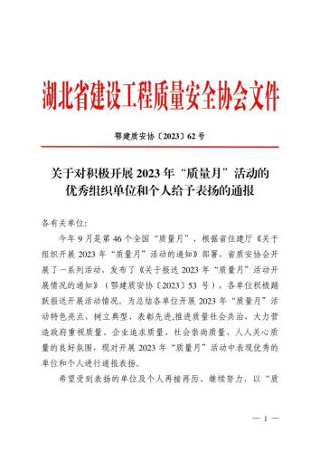近日,博宏建設(shè)榮獲湖北省建設(shè)工程質(zhì)量安全協(xié)會(huì)2023年“質(zhì)量月”活動(dòng)優(yōu)秀組織單位表彰,李德江、江緒芫、吉澤帥、鄭智秋、王杰、王小勇、劉陽、馬滕、郭永寧、柯善偉共10人榮獲2023年“質(zhì)量月”活動(dòng)優(yōu)秀個(gè)人表彰。