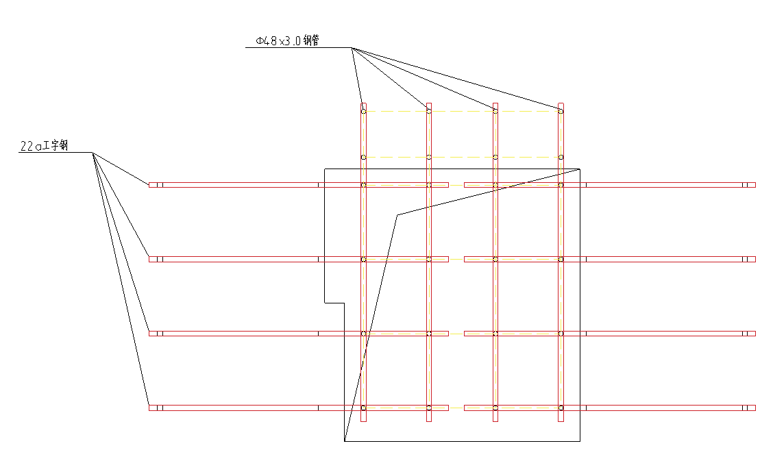 該技術通過采用兩道16#工字鋼懸挑(一道布置在屋面層,一道布置在屋面層-2層),分別設置下?lián)渭吧侠姆绞酱钤O支撐平臺,再利用此平臺為基礎搭設支撐架和外腳手架,既用于結(jié)構(gòu)施工,同時兼作安全防護,有效降低了操作人員的安全風險,對結(jié)構(gòu)安全性有較大保障。