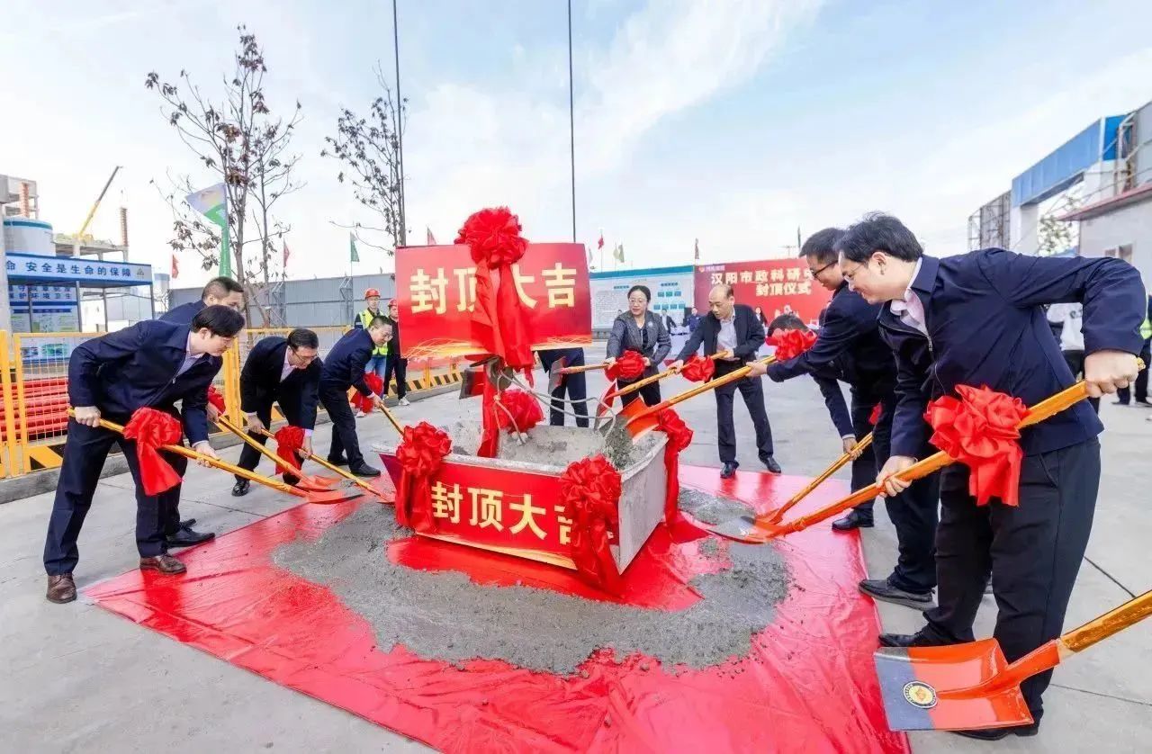 11點(diǎn)13分,嚴(yán)俊、王晟及漢陽(yáng)市政集團(tuán)、博宏建設(shè)集團(tuán)等相關(guān)單位領(lǐng)導(dǎo)共同為項(xiàng)目澆筑最后一方混凝土,現(xiàn)場(chǎng)禮炮齊鳴,封頂儀式圓滿完成,標(biāo)志著漢陽(yáng)市政科研中心順利完成一個(gè)里程碑節(jié)點(diǎn),現(xiàn)已進(jìn)入新的建設(shè)階段。