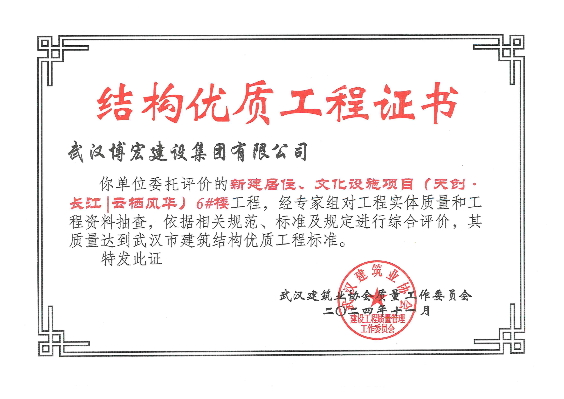 武漢市建筑結(jié)構(gòu)優(yōu)質(zhì)工程